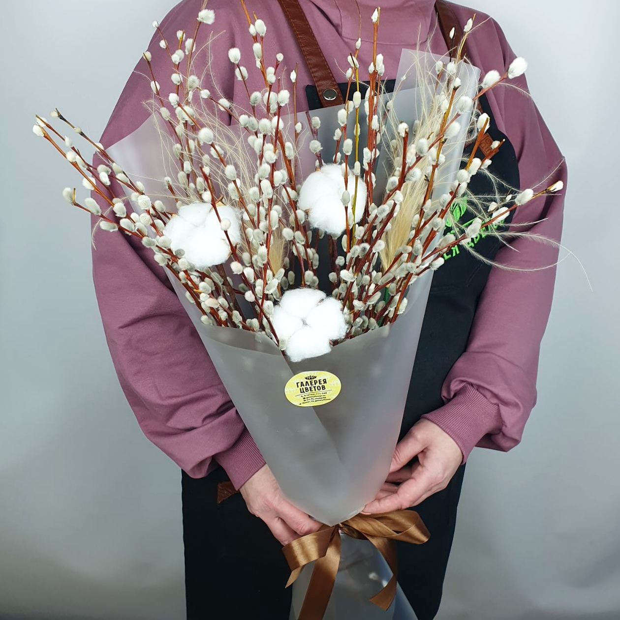 Состав: верба 51шт, хлопок 3шт, ковыль, упаковка, лента
